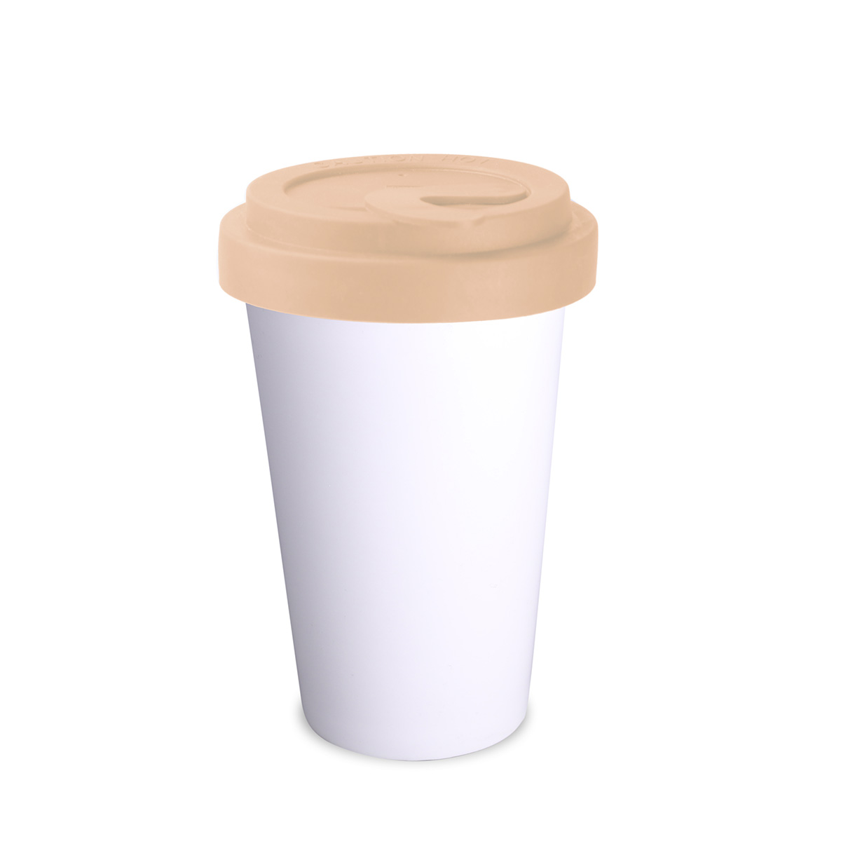 Porcelain promotional mug with a polymer lid that protects against accidental beverage spills – Lock stopper version. Designed for active people and travel enthusiasts. Thanks to its rare internal structure with double porcelain walls, this mug features an enhanced level of thermal insulation. The mug body is available in white and satin black. The lid is available in the following colors: white, orange 021C, Cool Gray 7, navy blue 294C, brown 4695C, black, pink 4064C, blue 2144C, eucalyptus 5493C, desert sand 2310C.